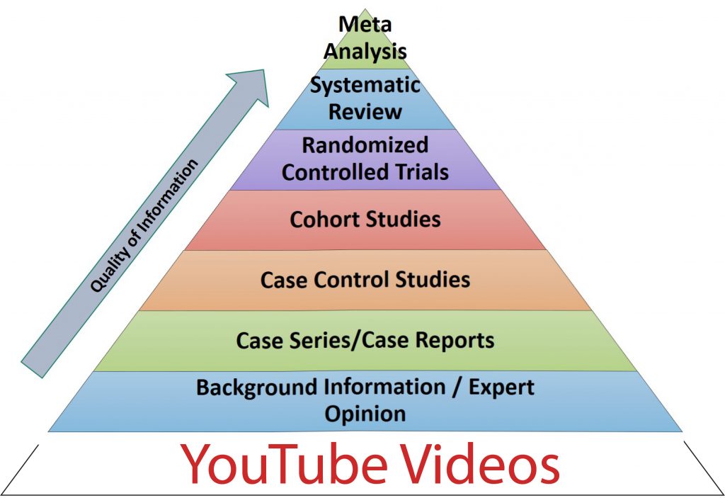 Cele mai vagi forme de informare sunt opiinile unui singur expert, deoarece ele reprezintă doar un singur punct de vedere, nevalidat de către comunitatea științifică. La polul opus se află reviewurile sistematice si meta-analizele, care se deosebesc una de alta prin faptul că reviewurile sistematice adună informația din mai multe studii publicate și o pun cap la cap intr-o nouă lucrare științifică, pe când meta-analizele adună DATELE mai multor lucrări științifice, le pun cap la cap și apoi formulează concluzii pe baza lor. Așadar putem spune ca prin reviewuri sistemice, se face o sinteza a metodelor , rezultatelor si concluziilor, iar pentru o meta analiză, se interpreteaza datele brute și se ajunge la o concluzie nouă.